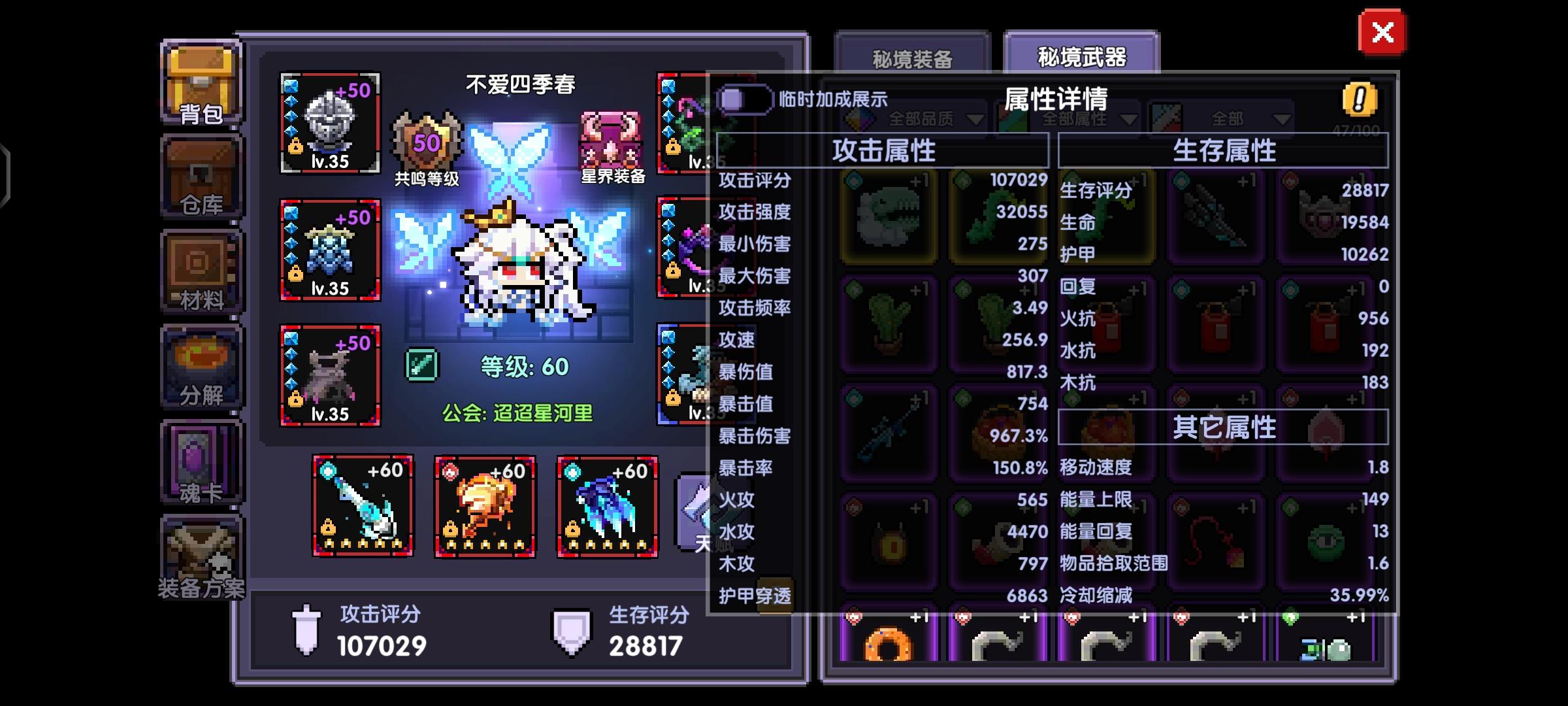 剜心者的移速契合这次大秘境的buff,有100元素加成,异族在群怪表现优异,极影更偏向于对单,如果有大佬有其他建议,可以在下方留言。