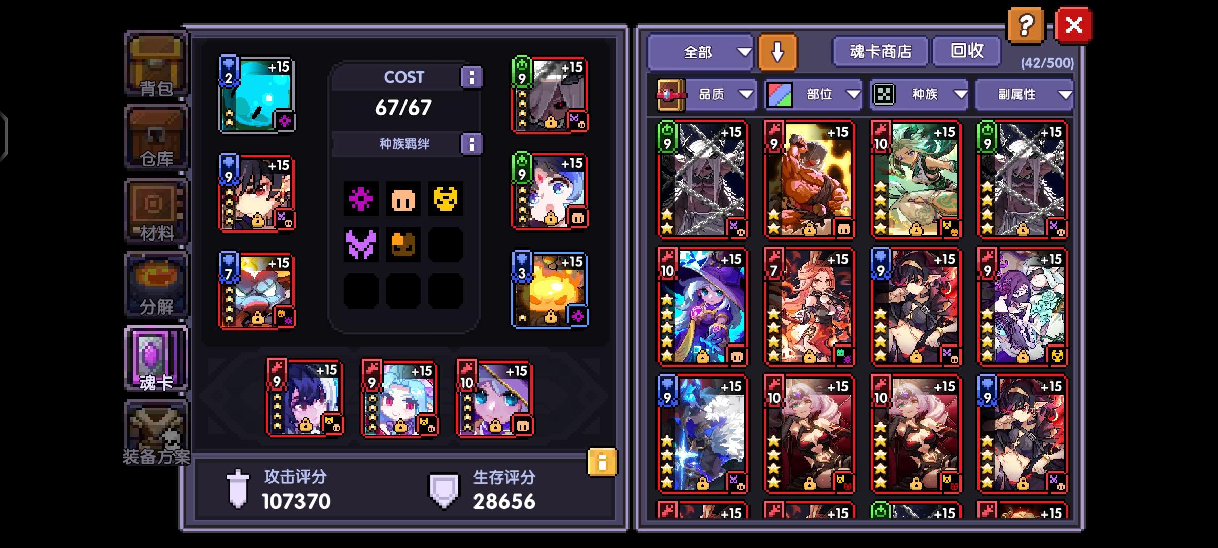武器位魂卡主属性均为爆伤,亚罕和撒斯姆选择水攻,其余防具位魂卡选择百分比攻强,新卡或者老虎选择元素穿透。