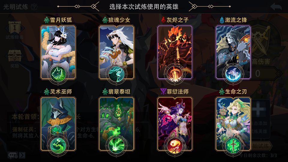 蘑菇补血流:(孢子+树妖+低语者+生命古树+治愈之风等)该常规打法一般可以拿满魔晶奖励,2000分伤害打满需要的条件较高。