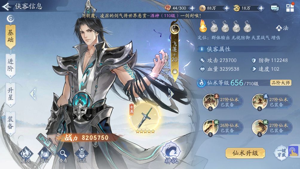 这个技能是一个AOE全体伤害技能,在此技能等级4时候,伤害系数提升只350%,在技能等级6时候可无视对方75%的防御属性,意思就是如果对方是10000点属性,飞蓬的怒气技能视对方防御只有2500点。此技能是使用飞蓬的核心关键,一定要优先升级到6级(佩戴27阶阴阳仙术或配合怒气技能+1宝宝等)。