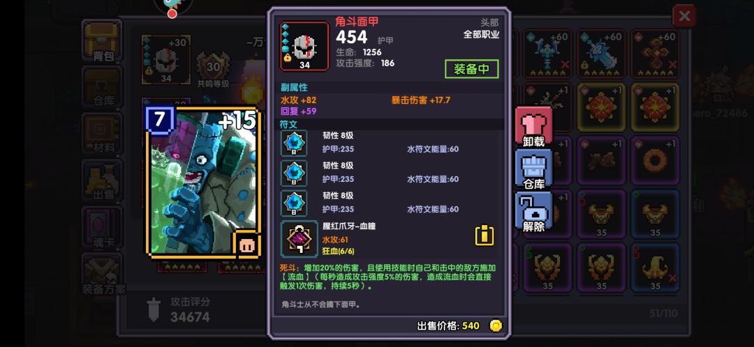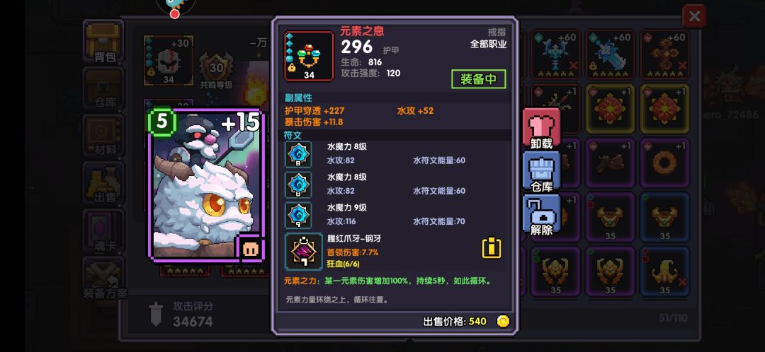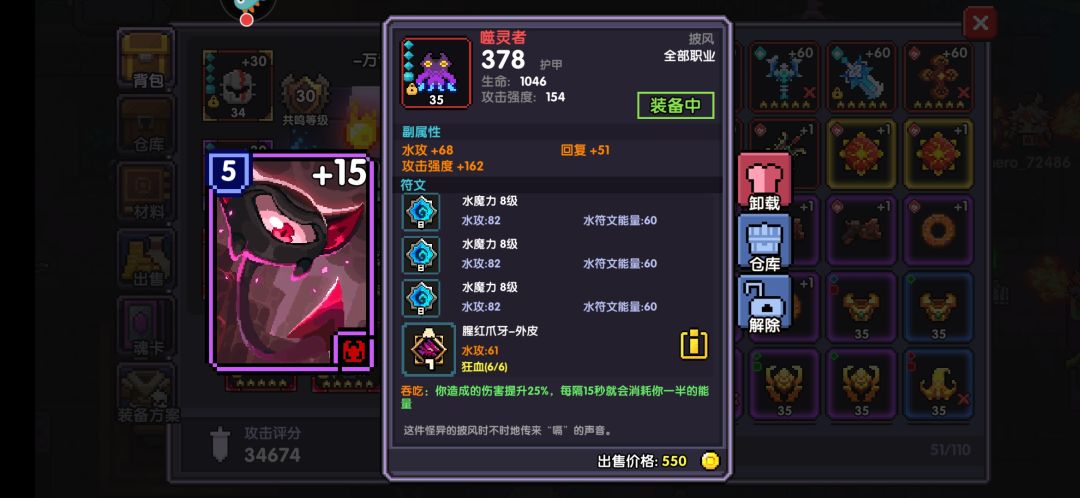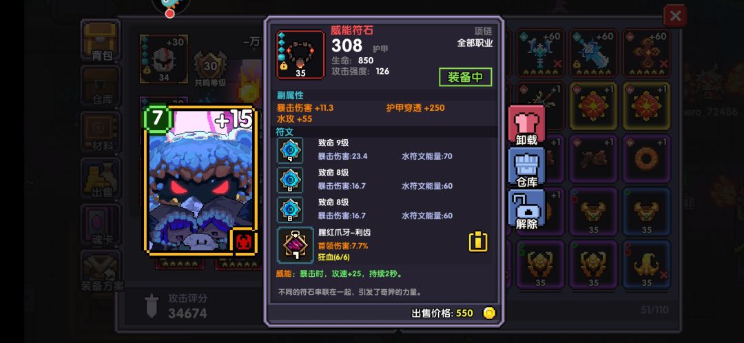 重点说一下关于首饰属性选择。如果你魂卡凑恶魔就可以两个首饰不要暴击值,如果没凑恶魔就需要一个首饰洗一个暴击值 让暴击值380左右。