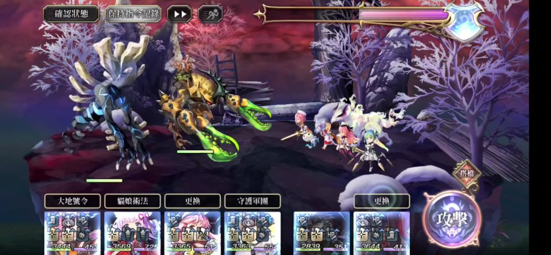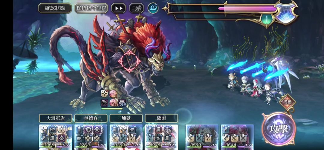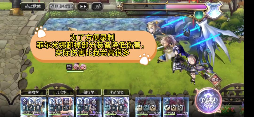 在第一回合时,我们切换赛温至后排,换上墨染协助转换BOSS的弱点,这思路并不影响美露迪展极风
