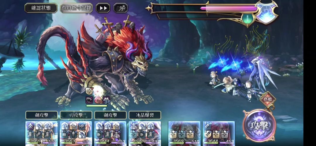 给予全体敌人先制的水属性斩攻击(极大,1T倍率21.0,满足条件最大倍率105.0)