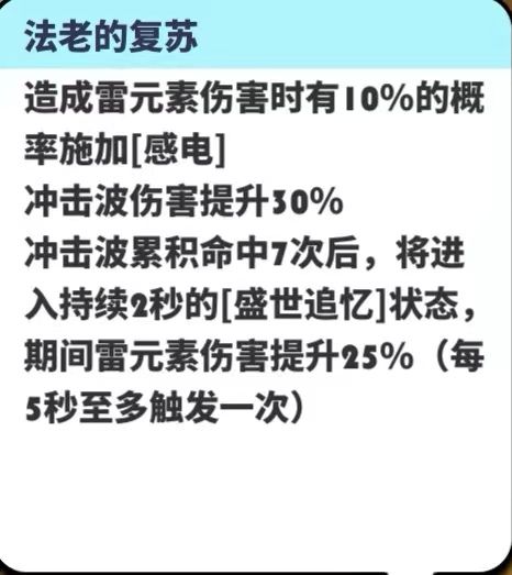 冲击波不同,发出波的顺序和获得祝福的顺序相同,也就是高倍率的强化冲击波必定会在最开始发出,这使得伤害的大头吃不到雷伤加成(最坏情况损失七个加强冲击波),后续的冲击波甚至属性都可能不对,震慑波本身也会因为高额的伤害加成稀释buff收益。