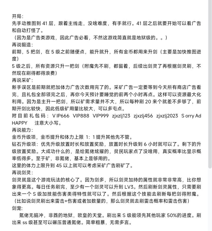 zjxzlj123 SorryAd zjxzlj2023 VIP666 VIP888VIP999 或者看照片,这个一开始很顺利,后面很难打,开局先弄五把剑,先全力投资一个剑,80多关后或者80前面,你就可以把剩下的四把剑给提升一下,提升到五级,不知道怎么看等级,点击右上角四个点那个,