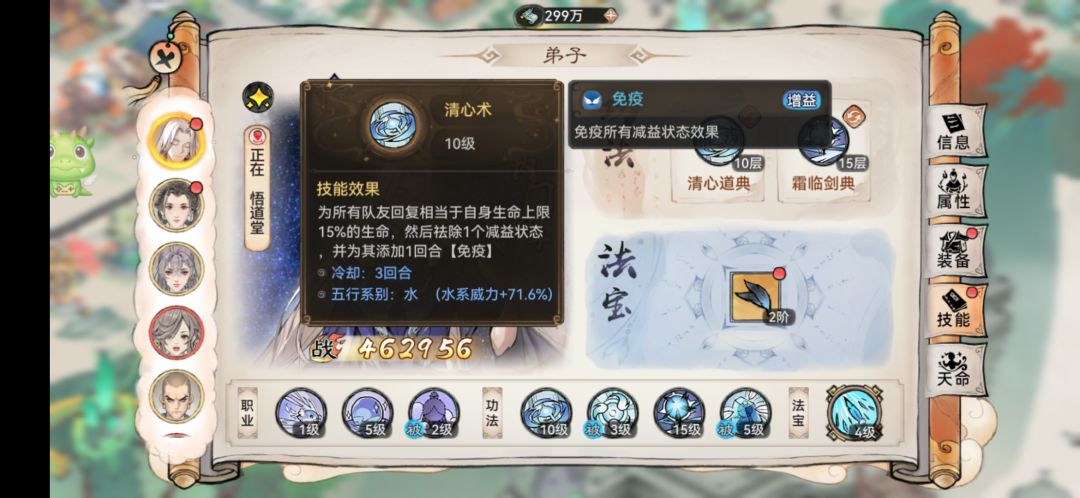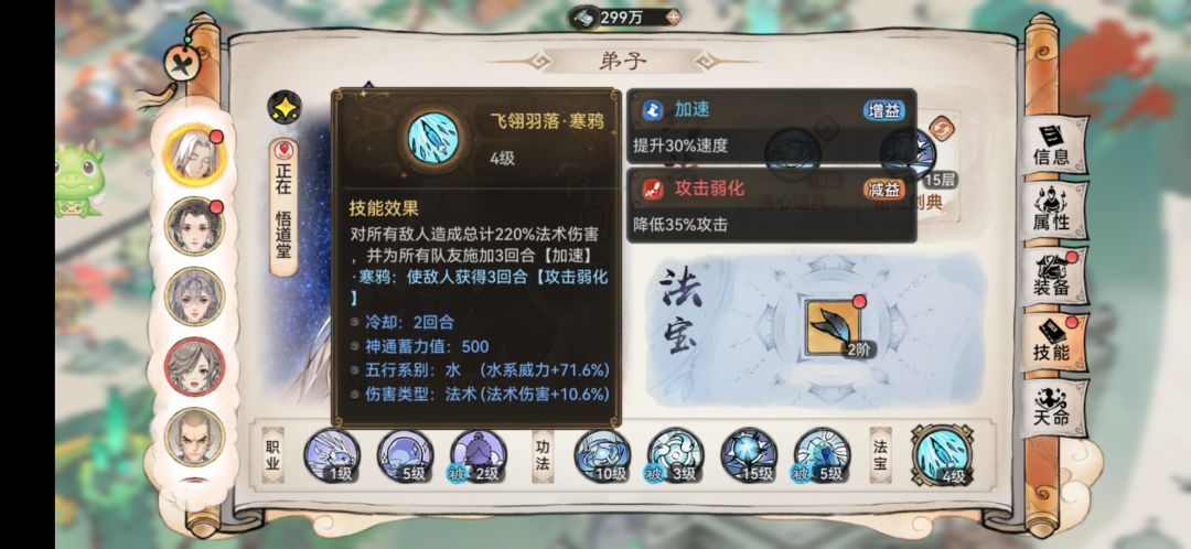 功法1:凌霜剑典,凌霜剑典是水系功法中的神技,装备叠速度,主打先手控制。伤害和战力反而不是那么重要