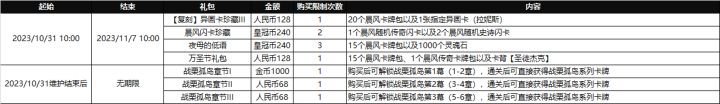 本周(10月31日-11月6日)礼包更替说明如下图
