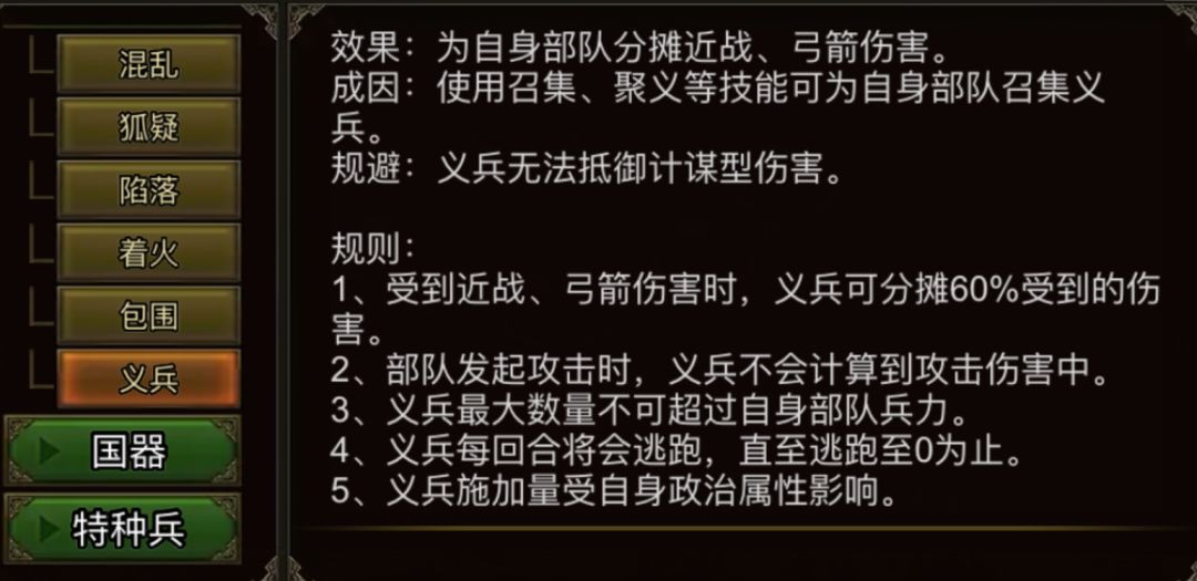 5.守望相助:提升义兵抵消反击伤害的比例(适合萌新玩家)