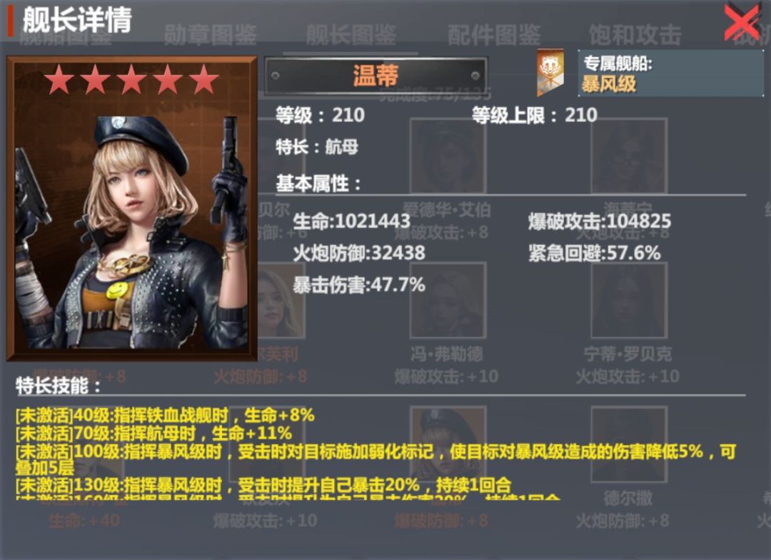 简评:暴风级定位为输出/群攻爆发,是初期最容易获得的舰船之一,有高额的AOE输出,而且普攻有50%几率连击。上阵舰长后,大幅提升自身暴击伤害。