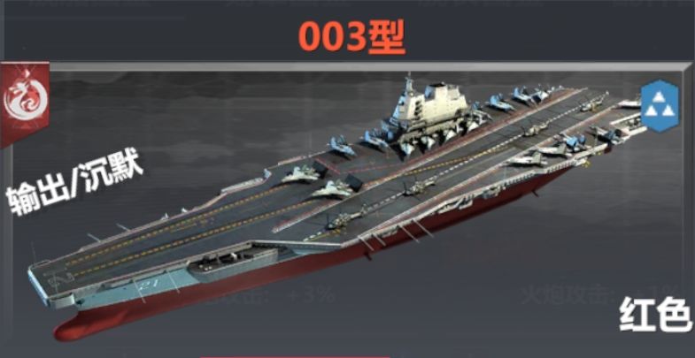 简评:002型为辅助型航母,降低敌方免伤,上阵舰长后可以为友方提高攻击;放在主力输出舰船前的位置,能大幅提高主力输出舰船的伤害能力。