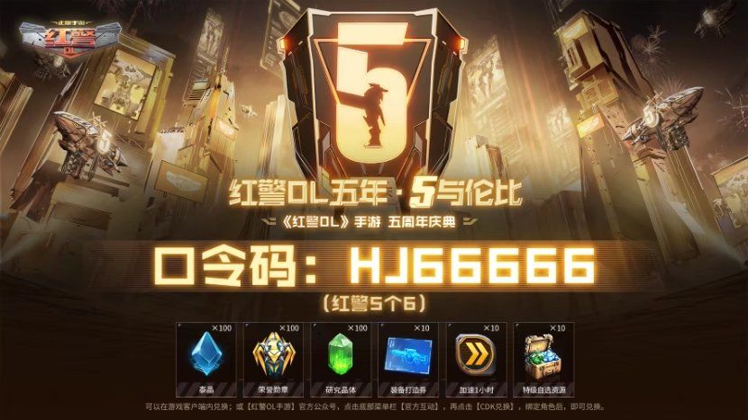本次直播庆典,ROG电竞装甲手机、多轮道具福利、不限量口令码全部安排! 各种珍贵的道具礼包连环送出,人人都有机会成为红警“锦鲤”。 *奖励内容和数量,请以10月11日五周年直播庆典公布为准。 2023年10月11日晚19:00, 《红警OL》“5与伦比”五周年直播庆典诚邀全体指挥官前来共同见证! 更多“5与伦比”的惊喜等你来揭晓。