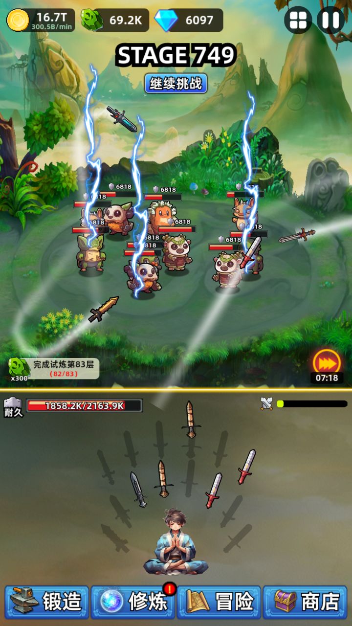 有首领之后可以不用一两把剑了,随着层数可以增加剑数量到了十几把剑可以增加200%以上金币加成,有这个金币加成是可以不用极限剑。