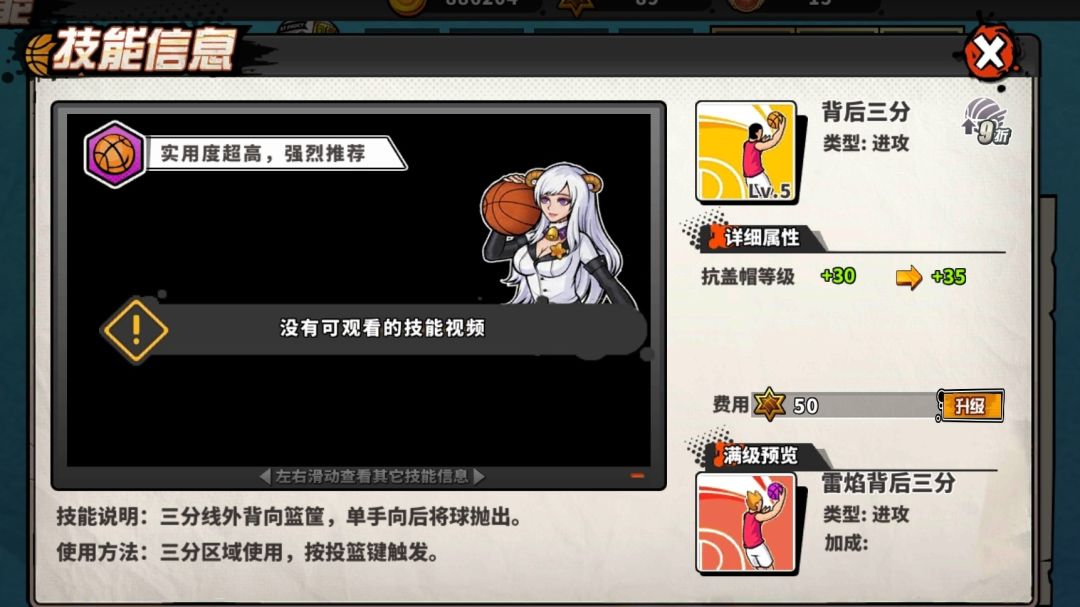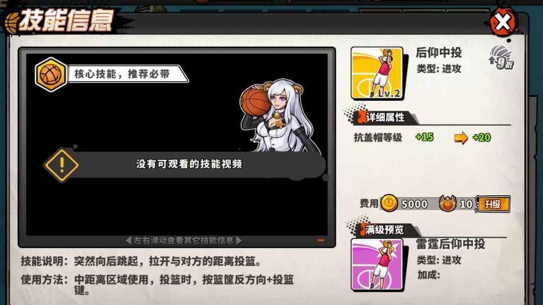 解析:SG是球场上得分的主力,所以投篮和突破都是十分重要的,后仰中投和背后三分都是为了降低被盖帽的几率,而为了空位出手必备的突破能力,需要带突破相关技能。