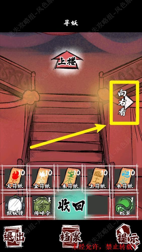 110.可看到黑色妖气。收起【照妖镜】后,点击【向右看】。 110 110.1