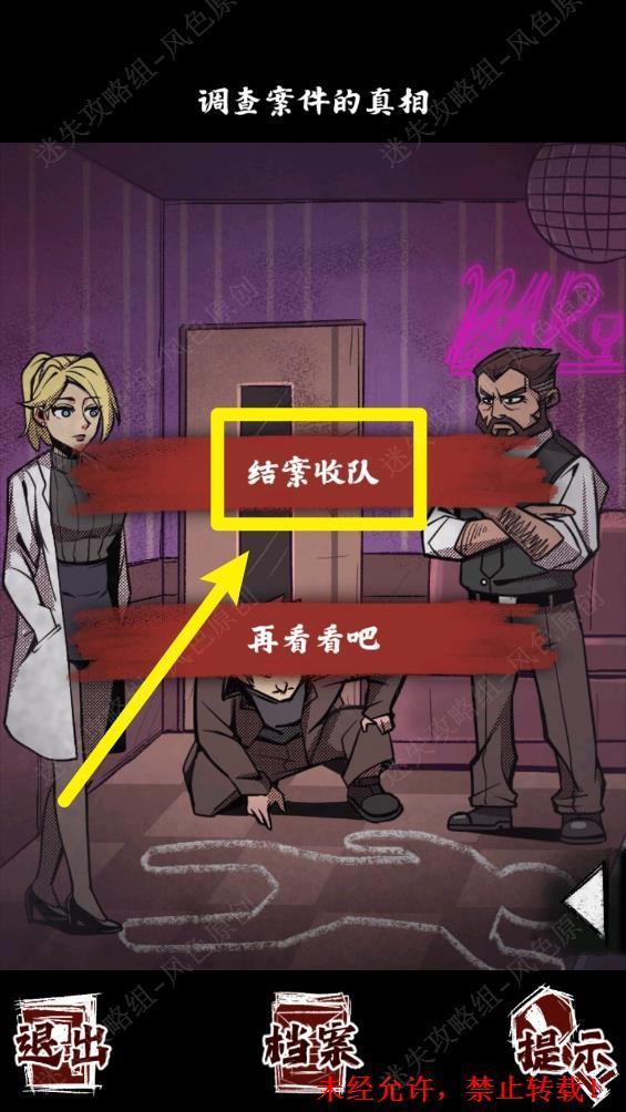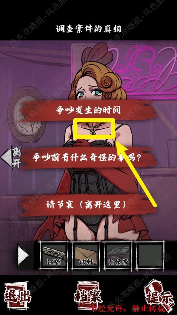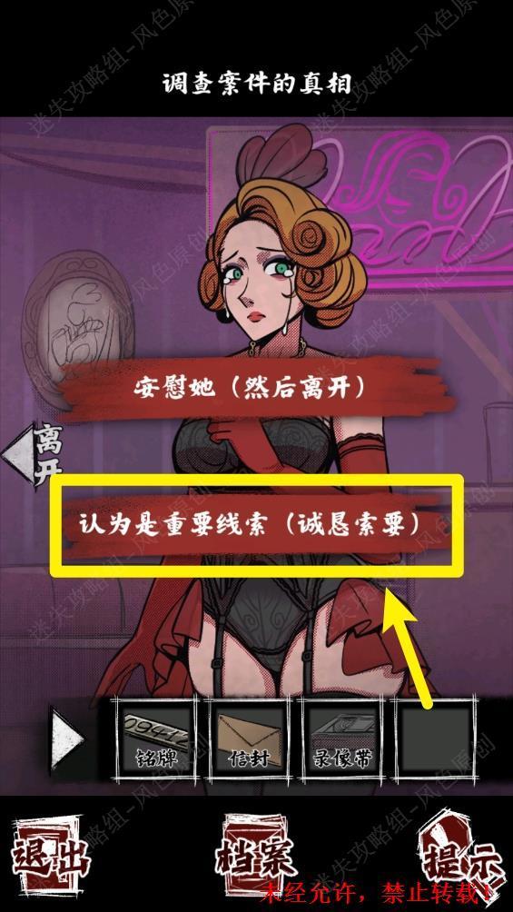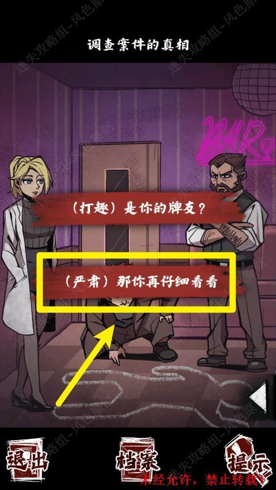 183.结局4【正义未迟】:在到达警局前的流程同结局1,在离开警局后,跳过前往家中的步骤,直接前往舞厅调查,取得项链后,去医院,解剖尸体并解开密码后,选择前往码头。 183