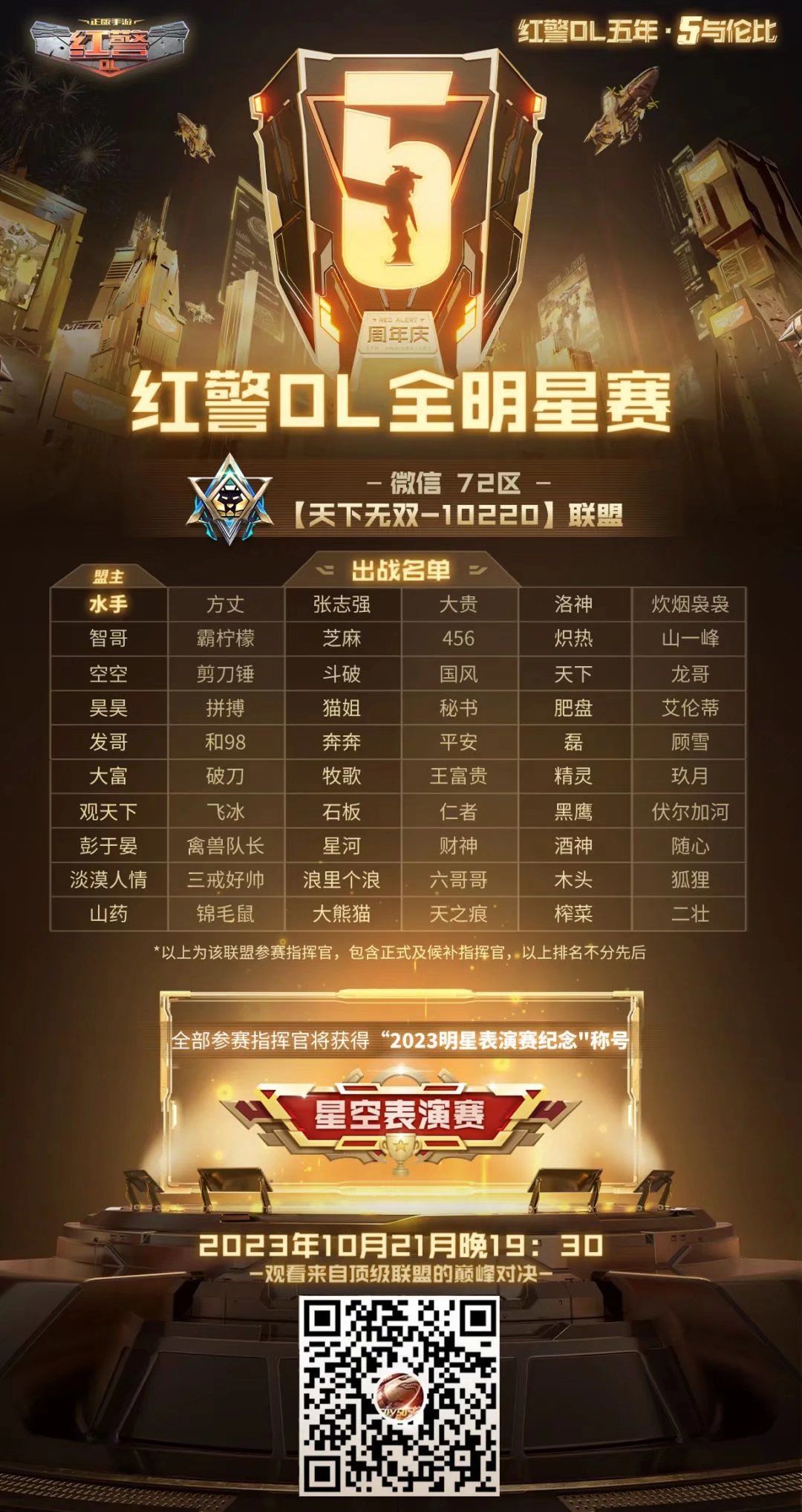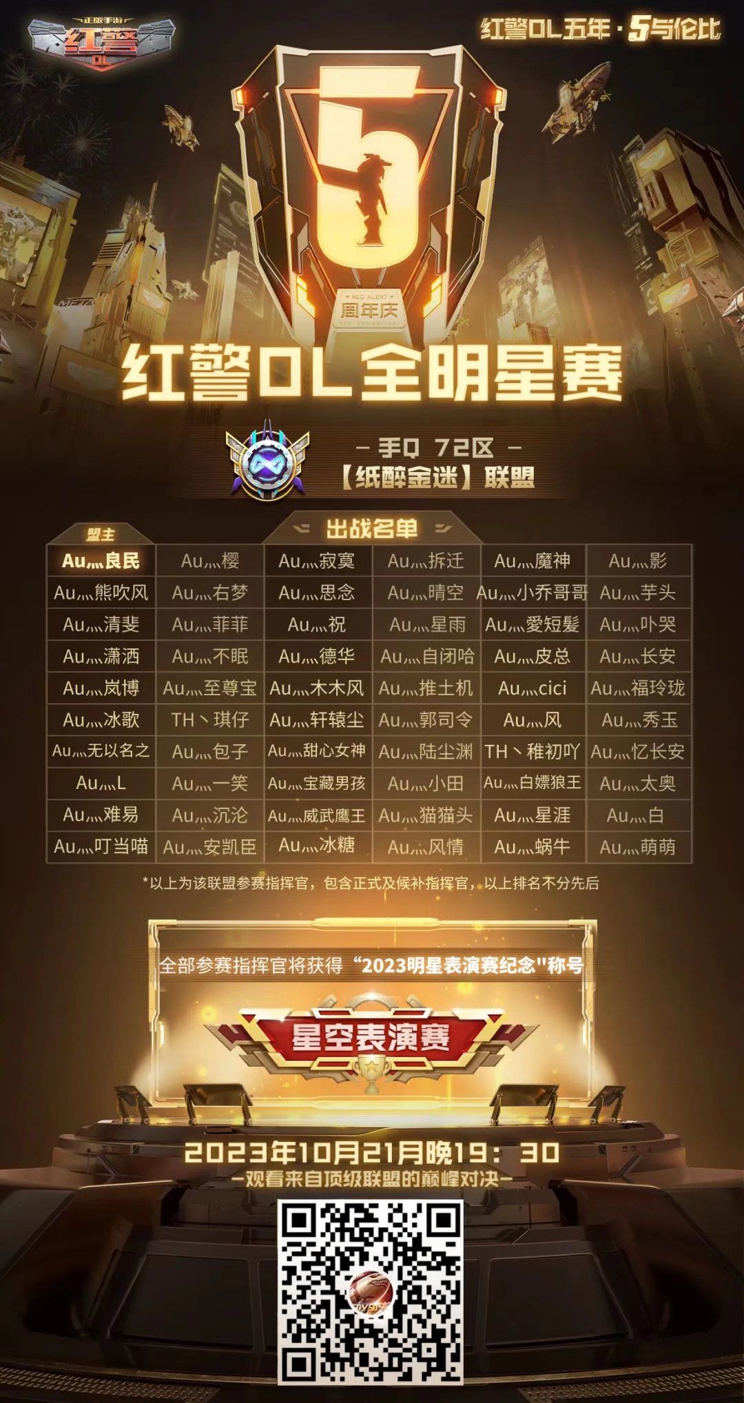 值得注意的是,全明星赛中两大联盟的参赛选手,均是经过多轮联赛历练的老手,拥有众多成就,无论是操作、策略还是团队配合,各方面都有突出表现,是真正的红警明星指挥官。 赛后,参赛的指挥官将获得珍稀的“2023明星表演赛纪念”称号,感谢他们为红警五周年庆典带来的精彩表演。
