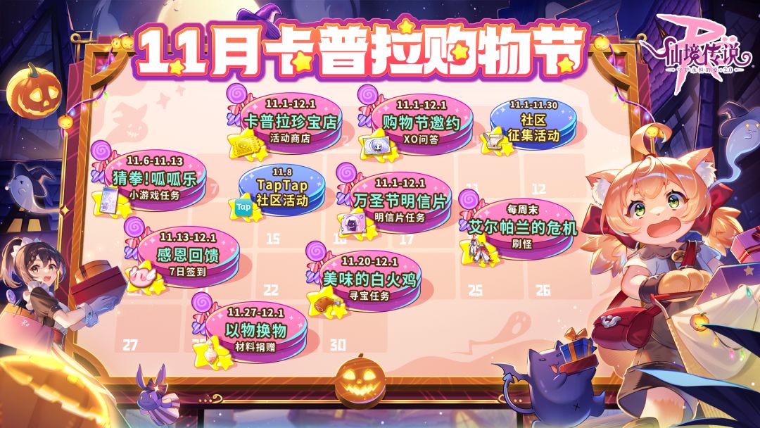 1)活动期间,「购物节冒险录」开启,通过完成「卡普拉购物节」中的各项活动,获得经验提升冒险录的等级,领取「恶魔之角」和「呆呆熊」各类稀有奖励。
