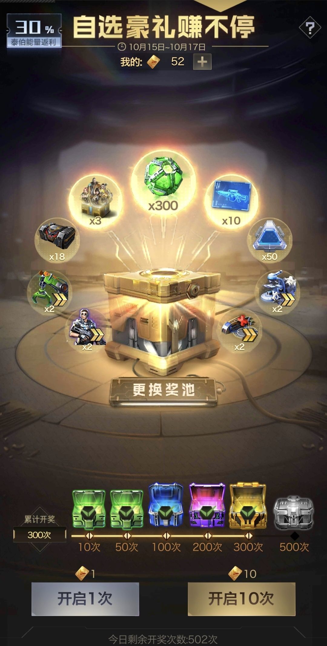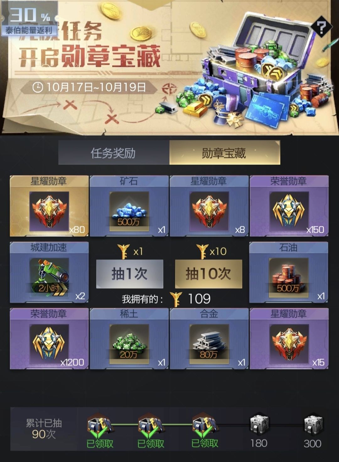 建议在荣耀同享期间根据自己道具留存情况,尽可能多做一些,比如点券夺宝的点券,勋章行动的钥匙,都可以这时候花,配置好次数,我自己是做了300次点券,今天开了90次勋章宝藏,明天后天各开30次,在获取道具的同时尽可能多的获取荣耀同享的返利,非常划算!不过小编要吐槽一句脸太黑了,抽了300次夺宝,就中了一次特等奖,给我整emo了,策划大大给点力量吧!