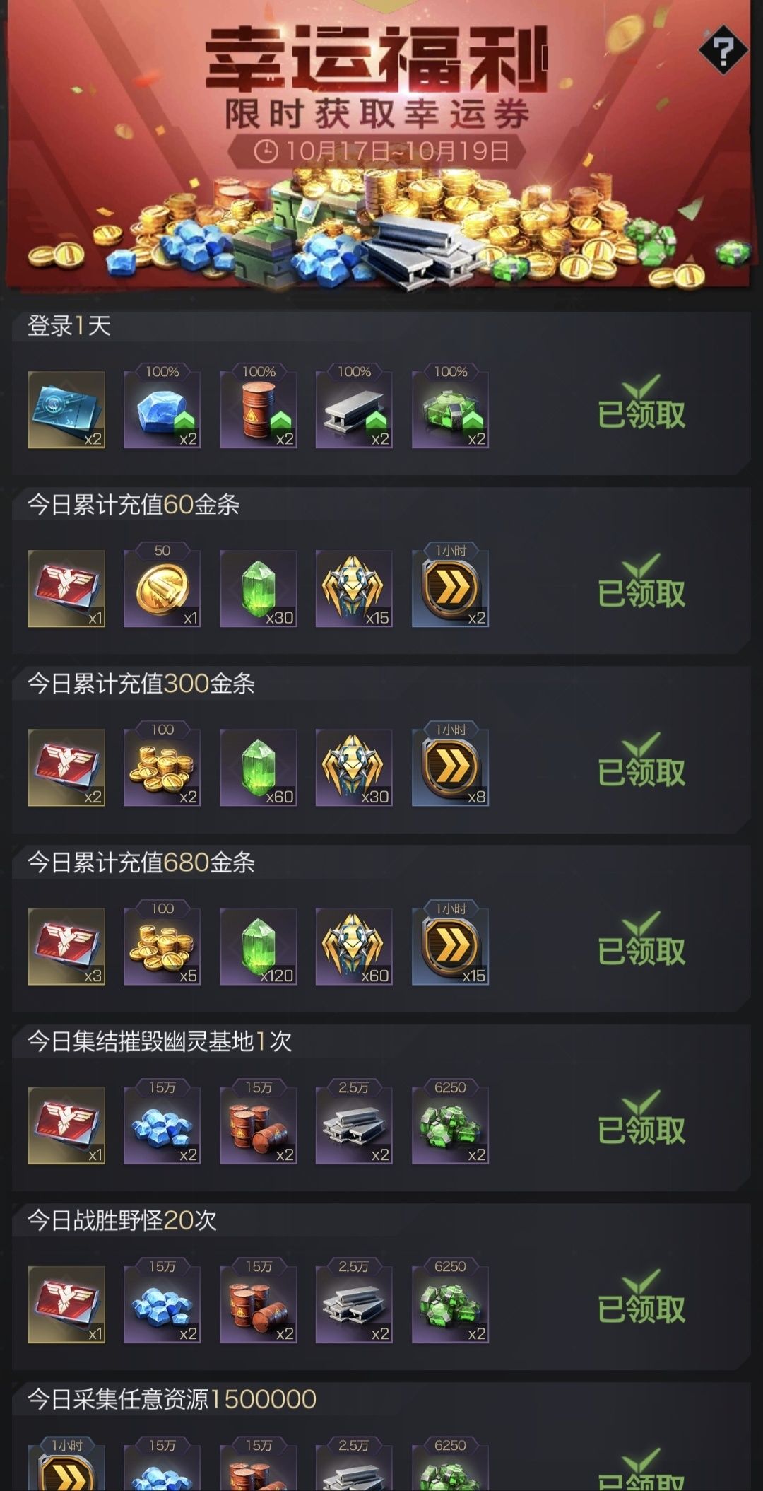 以上就是为大家盘点的五周年庆新上线的几个福利活动,分别给出了小编参与活动的攻略建议,供大家参考,周年庆典开启,存好金条狂欢吧!以上就是本期战地创作者投稿的全部内容了,具体内容以游戏内为准。欢迎指挥官们在评论区交流!