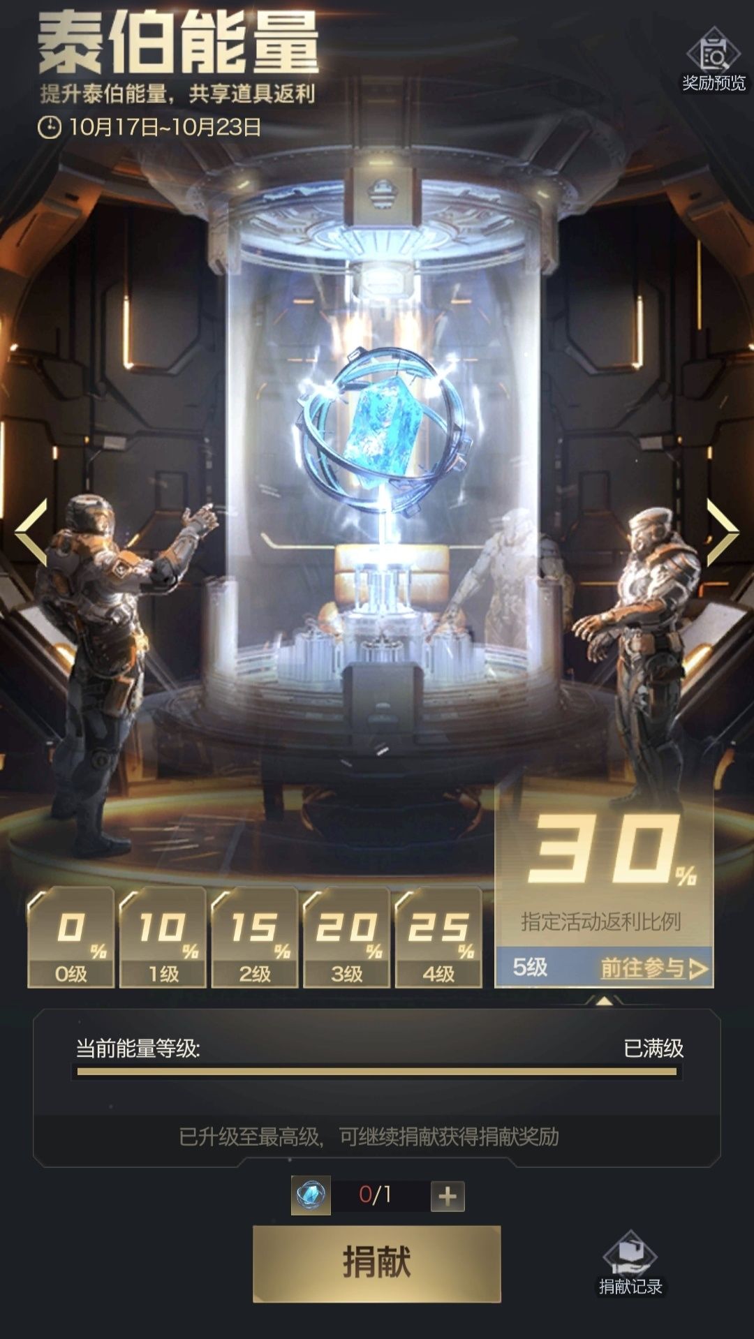 最高30%的返利,所在联盟的泰伯能量和赛博能量在等级提升时与活动结束时(需重新登录),会以邮件的形式发送返利奖励。