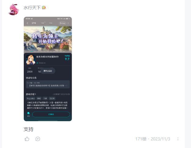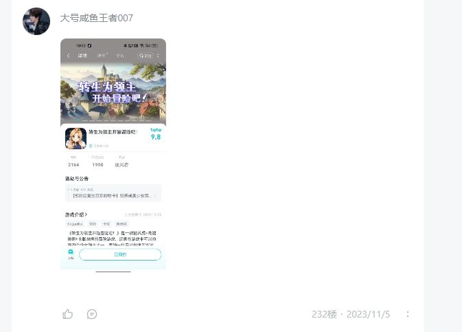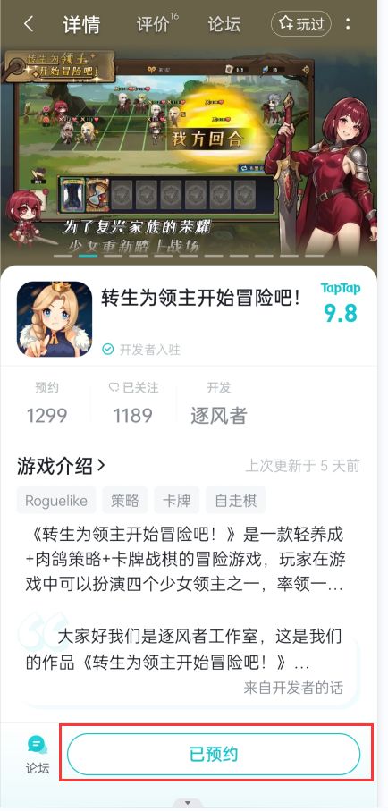 活动时间内,前往TapTap预约《转生为领主开始冒险吧!》,并在本帖评论区晒出预约截图或评论截图,即可参加活动。截图格式如下: