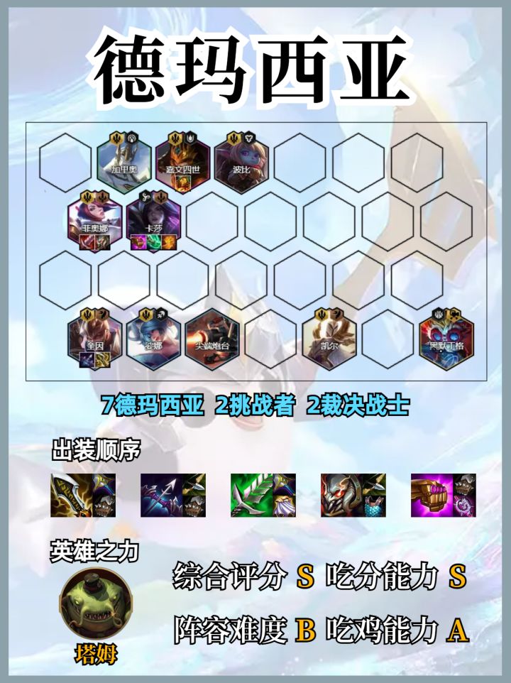 【阵容组成】7德玛西亚 2挑战者 2裁决战士