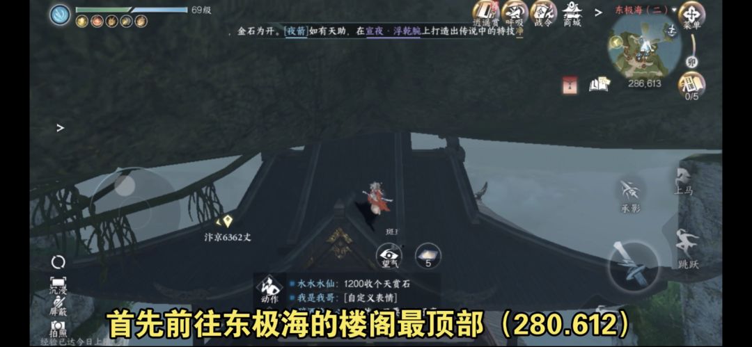首先前往东极海的楼阁最顶部(280.612)用承影剑进入栖风岩洞穴