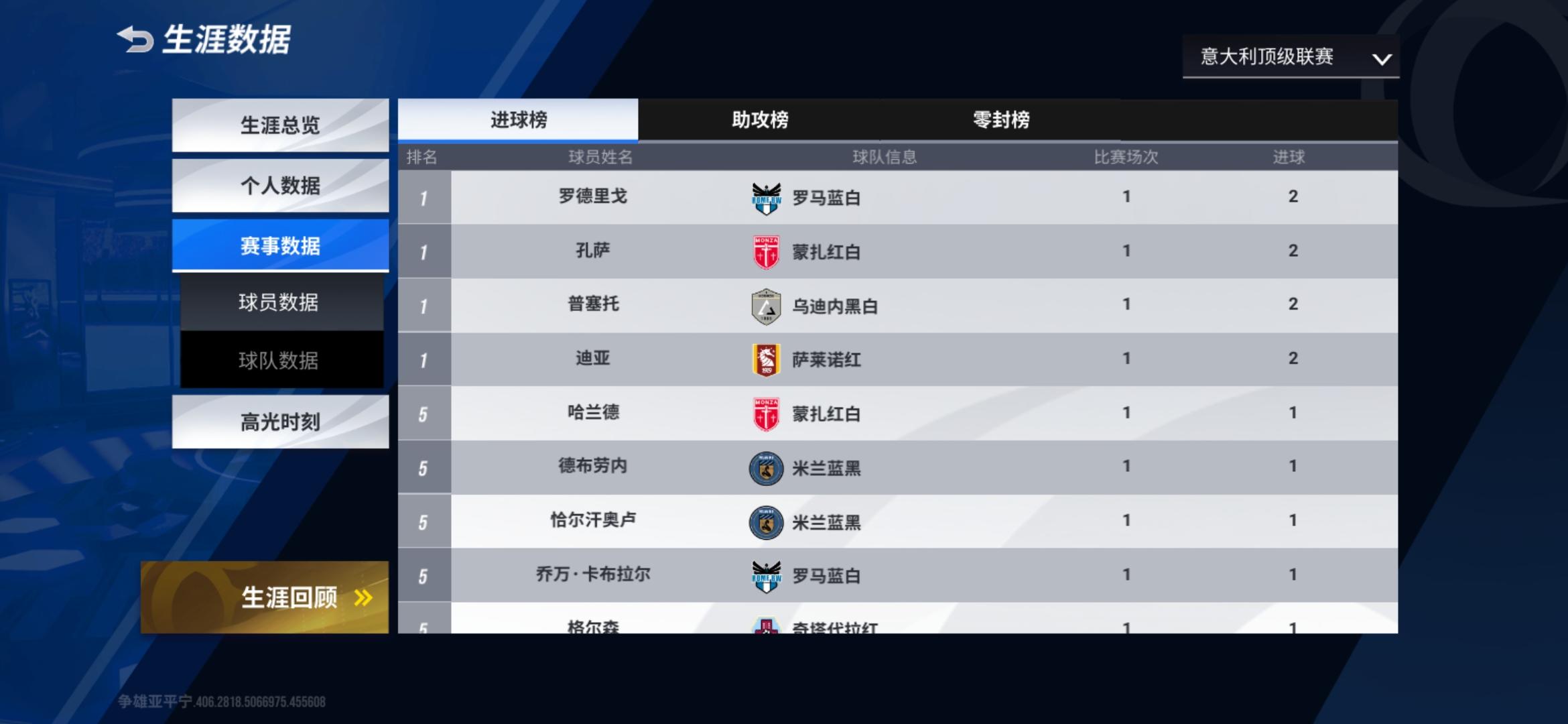 生涯模式时隔两个赛季,曼城的哈兰德和德布劳内出现在意甲赛场。