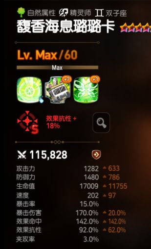 半肉双效遥遥领先,所以我很自觉地选择了阵地,由于一速太慢,我做出了一些双效比较突出的角色,比如落月、赛娜、光火奶,以此尽可能获得Debuff系统上的优势。
