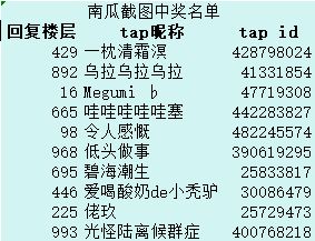 南瓜截图中奖名单