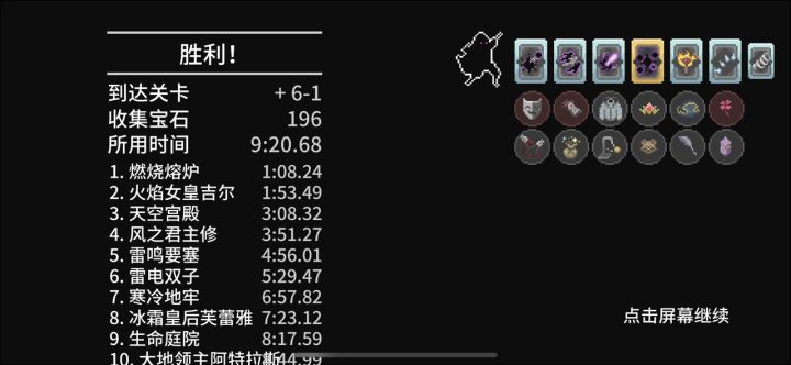 我第一次玩这个游戏模式,选物品浪费时间比较多,也在10分钟之内通了,大家可以参考,刷钱很快,boss秒杀,一般不浪费时间估计5、6分钟通关。