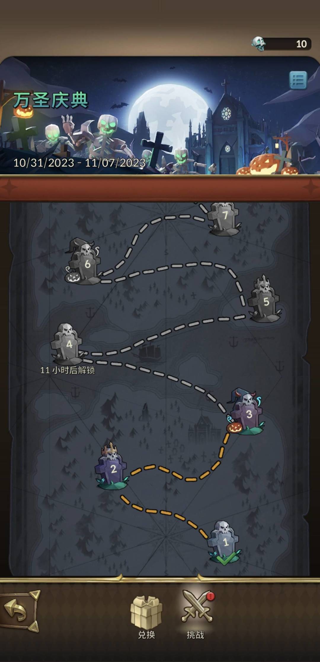 1. 活动期间,每日均会解锁3个关卡,完成活动挑战关卡即可获得活动道具【骷髅头】💀,每个关卡可获得10颗;