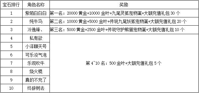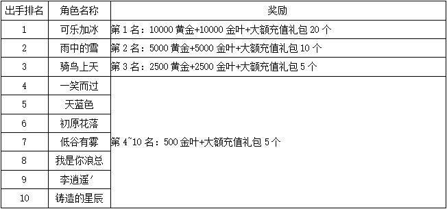 《世界OL》10月新区活动获奖名单