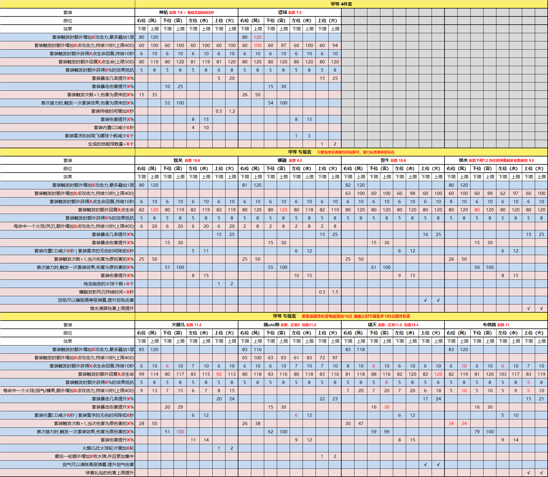 表里的套装伤害系数看个大概就好不要较真哦 ╮(╯▽╰)╭
