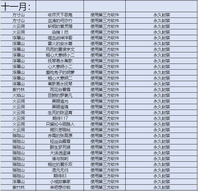本帖将用于各位上仙举报公屏不当言论、使用第三方软件(包括但不限于除游戏安装包外的脚本、外挂、加速器、美化包等)、卡BUG等违规游戏行为,我们将对举报内容进行核实,并视情况给予禁言1天-永久禁言、封禁角色、封禁账号等惩罚。
