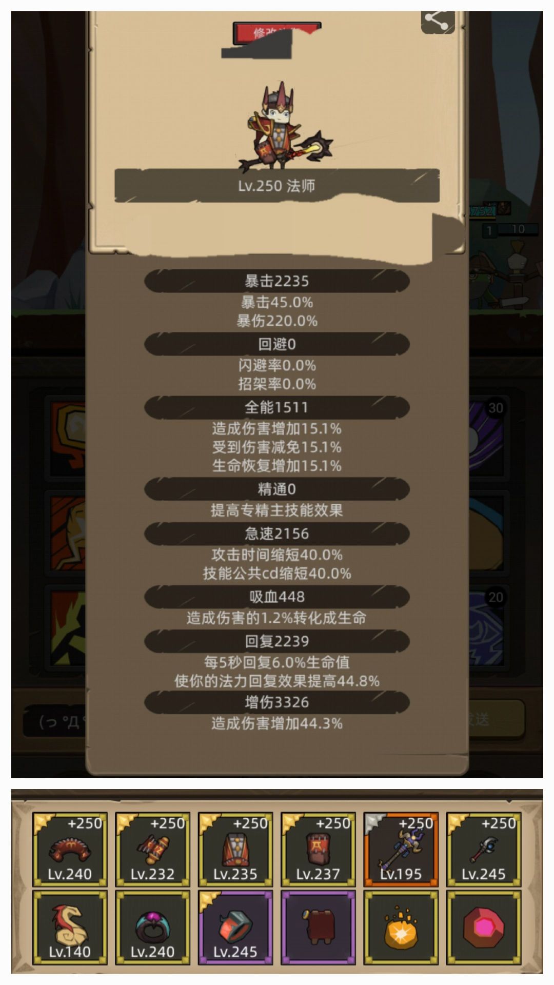 优先满急速暴击目前250级需要2000点对应绿字(当前等级X8即可)