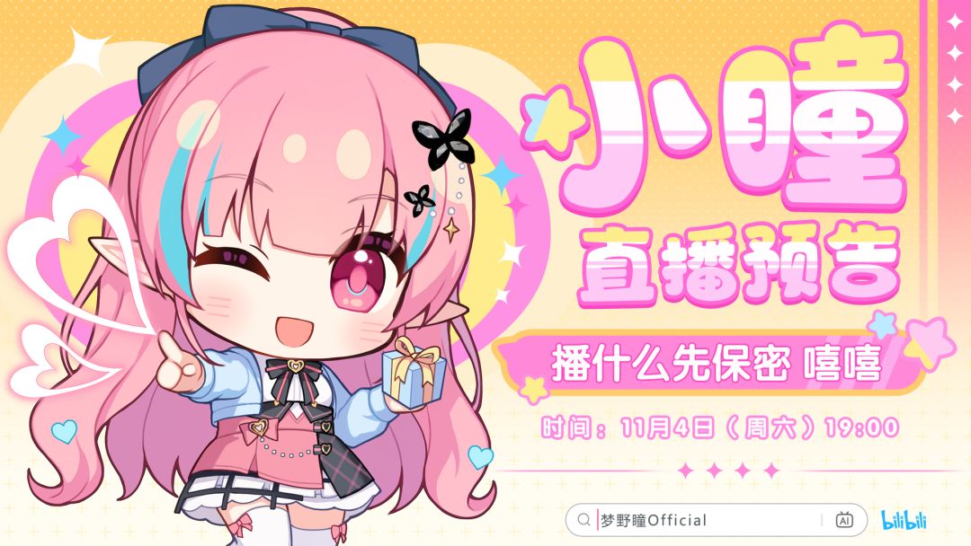 此外还有一个周年好消息~小瞳本周六(11月4日)会在Bilibili进行久违的直播哟,小瞳的粉丝们记得来看喔,周六不见不散!!