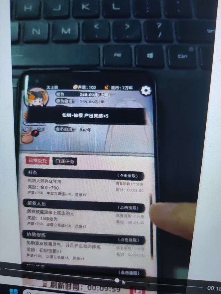 游戏切下后台,再切回来修为秒加。