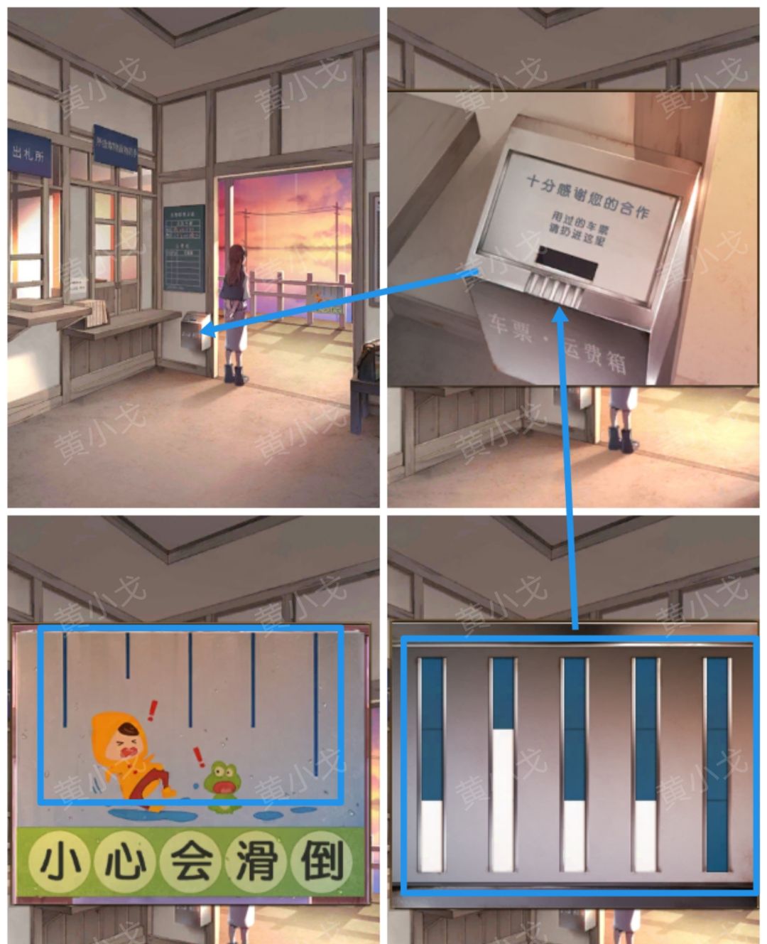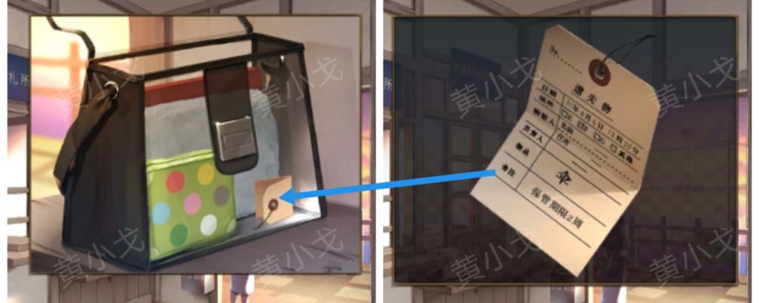 6.(月台)点击站台上的白线,放上【零件】,获得线索:两个人一起撑的伞