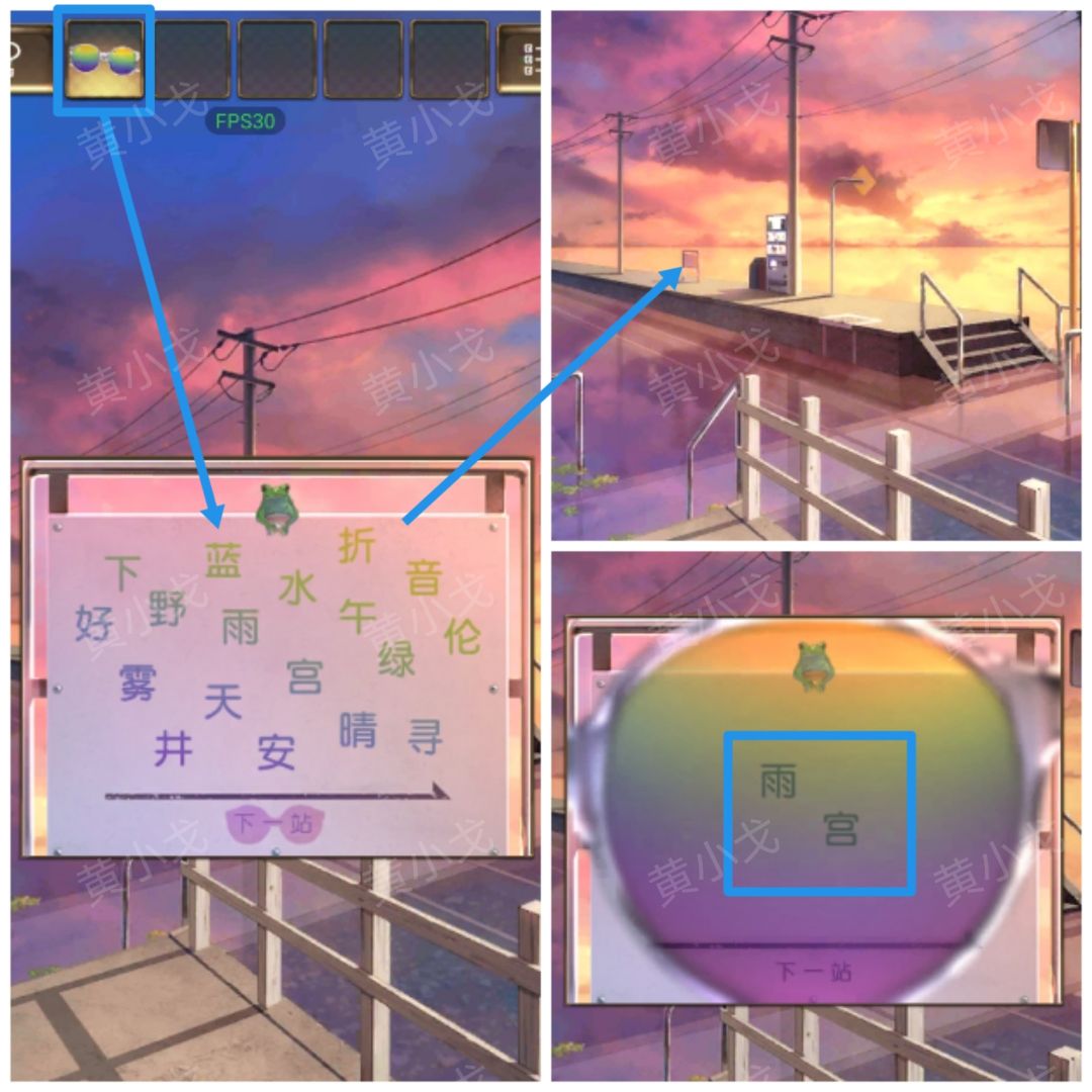 10.(月台)点击站牌,使用【墨镜】,获得线索(雨宫)
