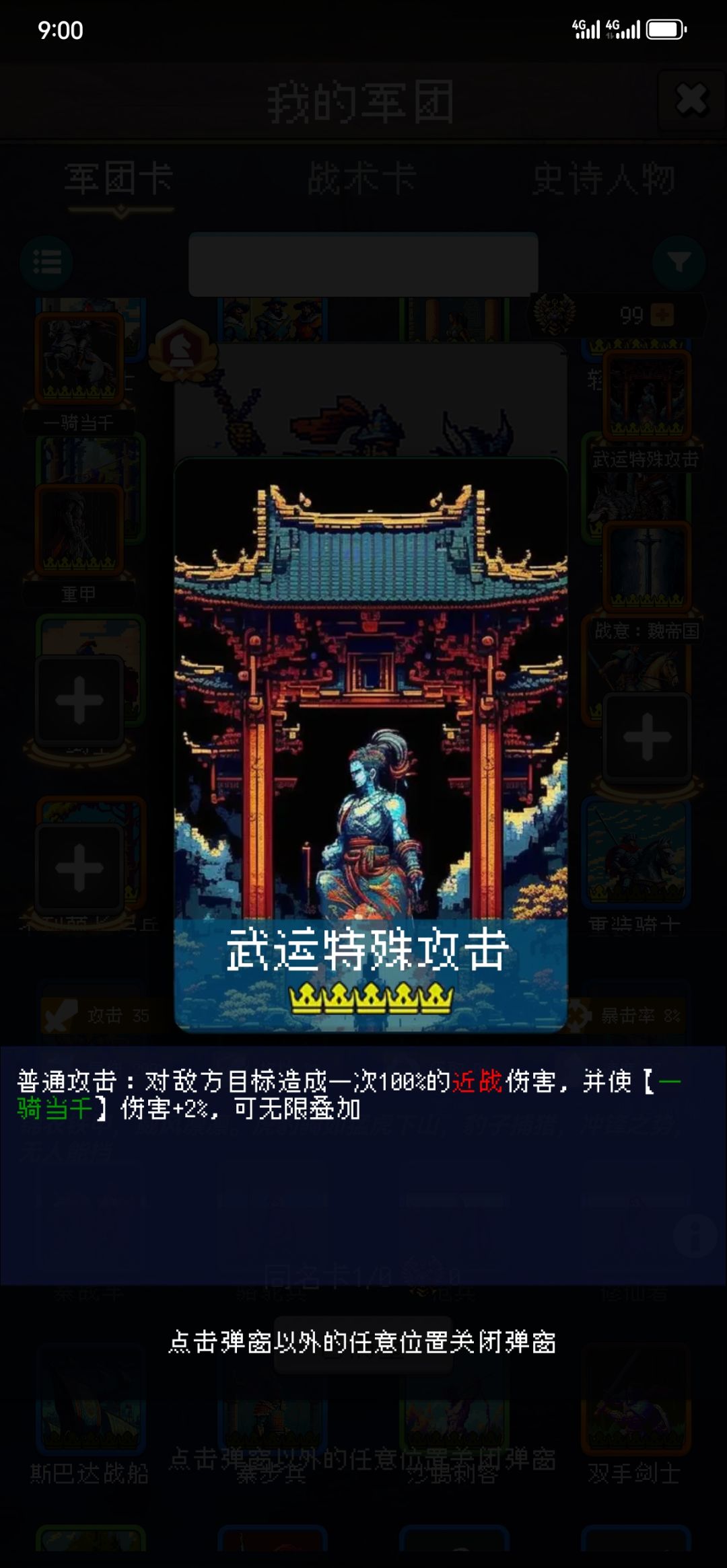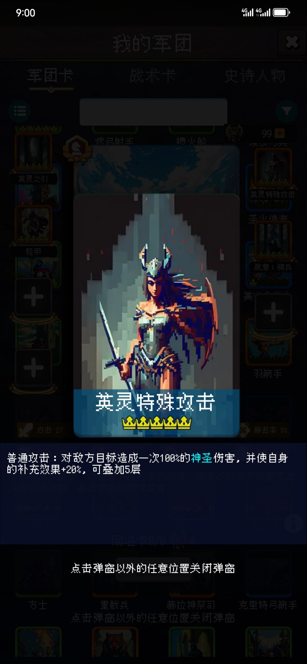 个人建议氪金党不宜分散资源搞收集,因为低星氪金军团卡只有两个技能槽,且除了龙骑外局内难以获取,所以建议新入坑的氪金玩家集中资源购买一张适用性强的军团卡和战术卡,女武神五星后有特殊普攻,增加100%治疗量,兼具强度适用度。