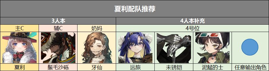 司辰们好呀!今天给大家带来了主流主力输出角色的配队推荐。在3人关中,一般以主C+副C/辅助+奶妈或两个输出位+奶妈;若练度高甚至可以3个输出位力大飞。
