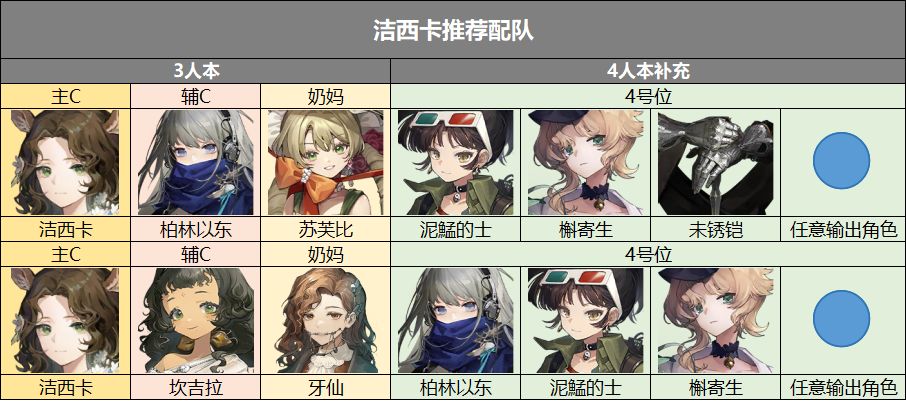 最佳配队:洁西卡+柏林以东+苏芙比/洁西卡+坎吉拉+牙仙