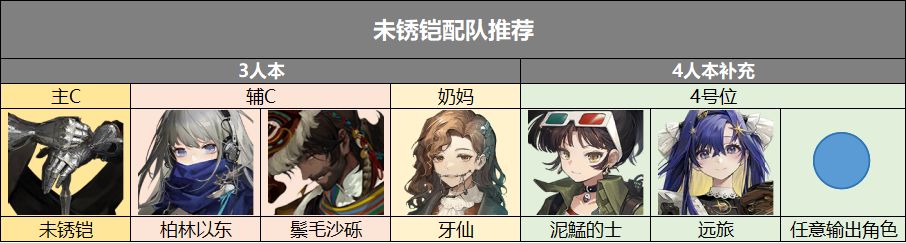 未锈铠最佳配队:未锈铠+柏林以东+牙仙
