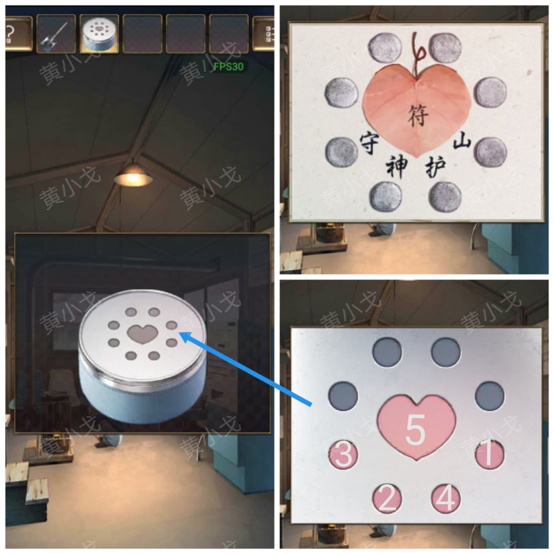 11.打开【外壳】特写,根据神棚上的线索,按顺序按下对应的按钮(山神守护符)