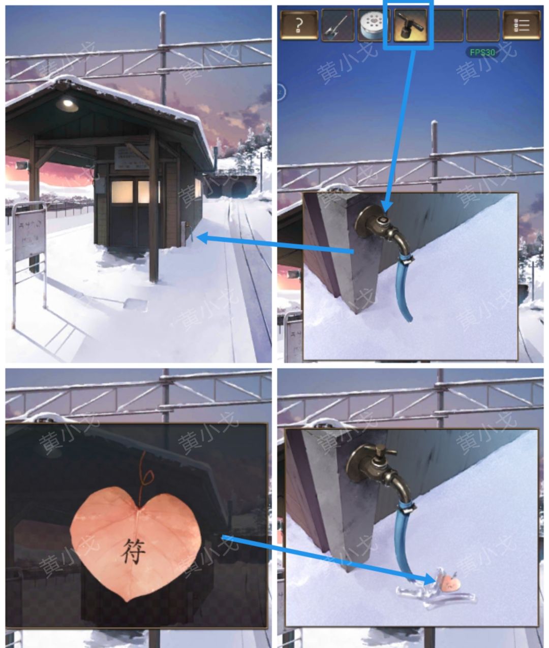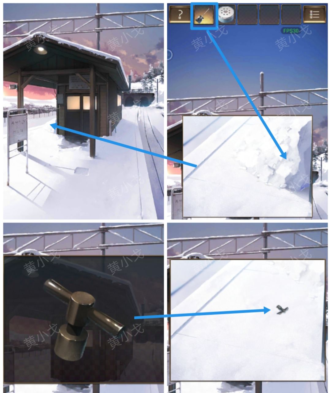 7.点击房子旁边堆积的雪,用【铲子】铲掉雪,获得【把手】