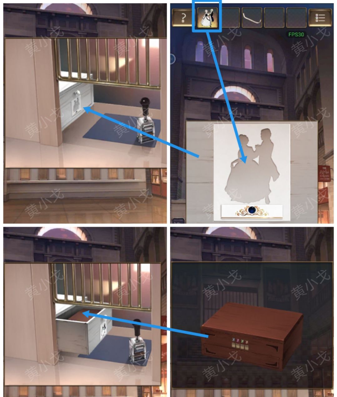 2.(右边场景)打开【信封】特写,获得【硬币】
