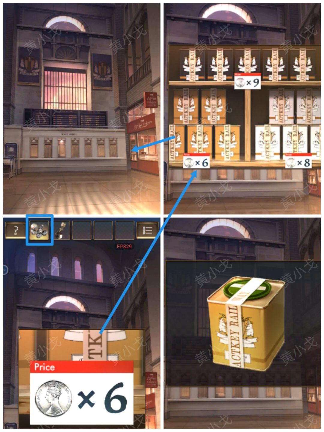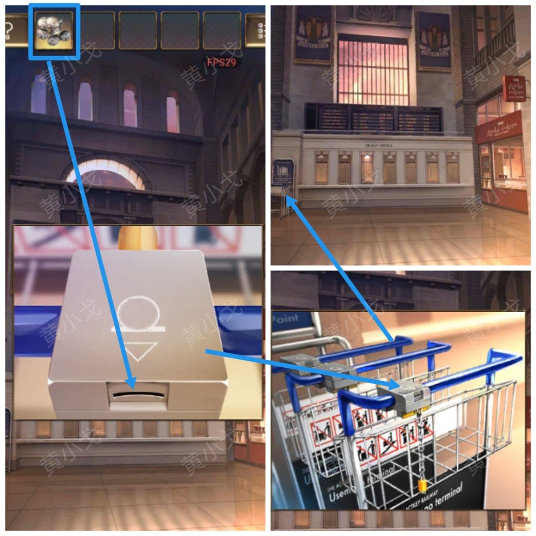 1.(右边场景)点击售票口,打开第二个窗口,获得【裁纸刀】