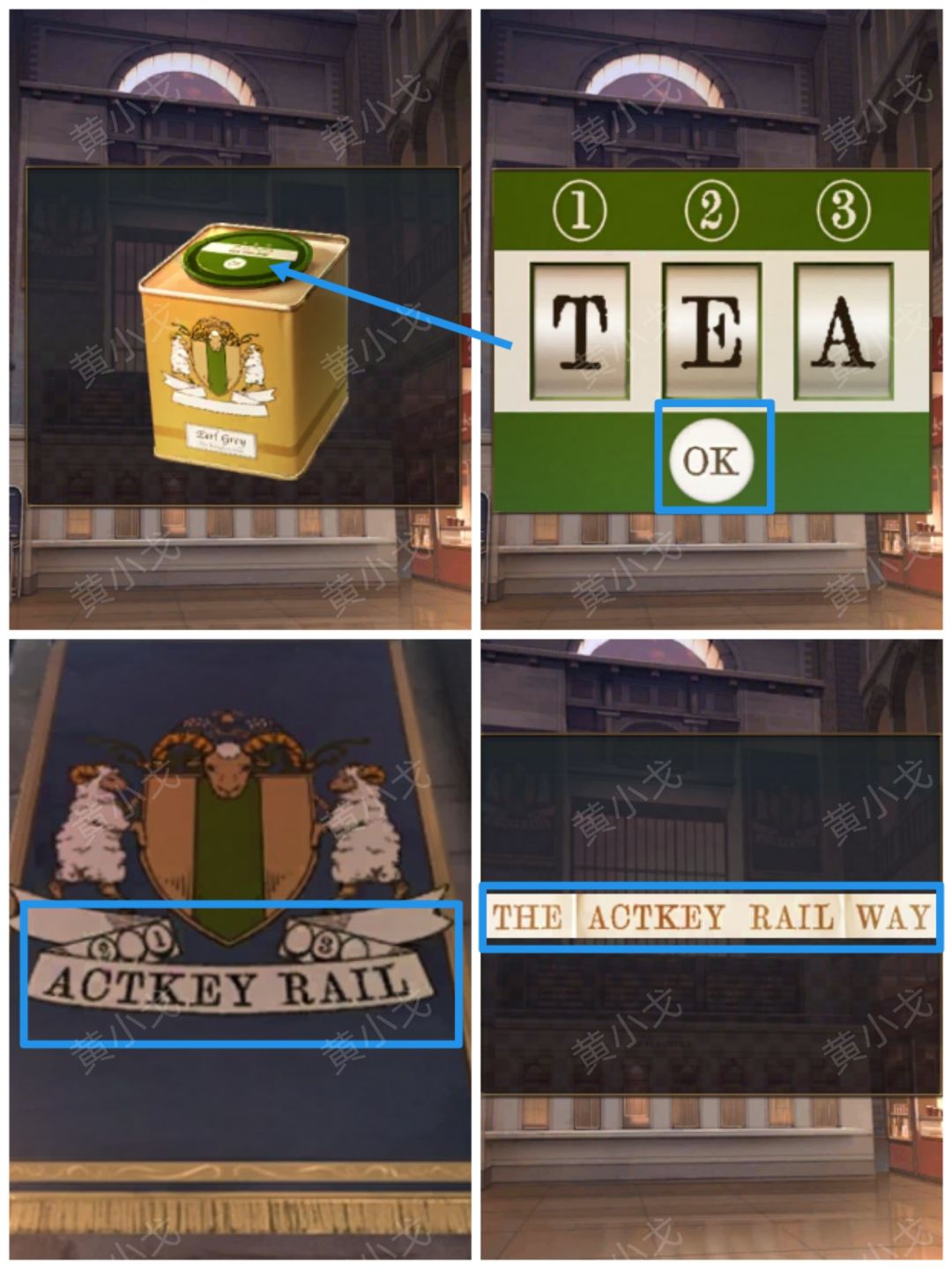 根据【缎带】上的线索:THE ACTKEY RAIL WAY,结合条幅上的线索,推出:1-T、2-E、3-A),输入密码:TEA