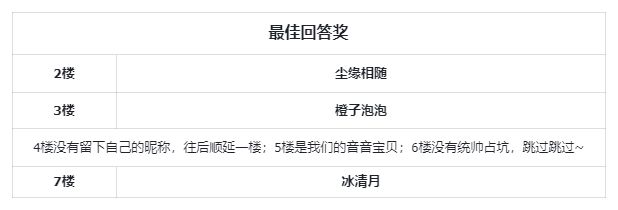 恭喜尘缘相逢、橙子泡泡、冰清月三位最先占楼并回答正确的统帅获得我们的最佳回答奖~